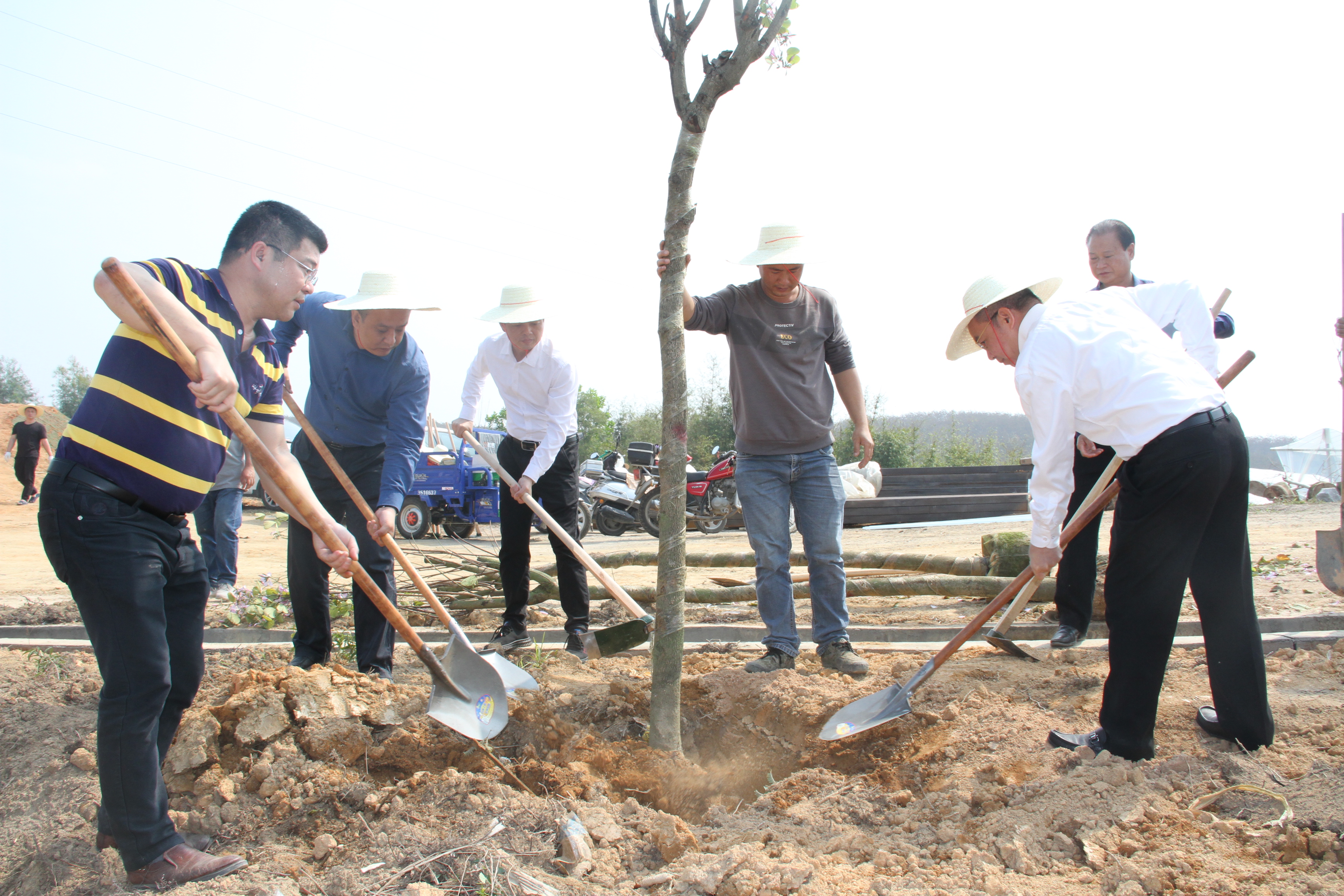 支光南(右一)與大家一起為樹(shù)苗培土