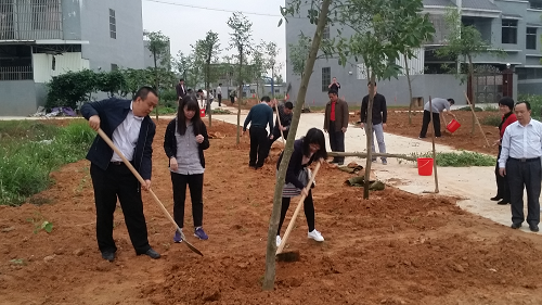 植樹現(xiàn)場,大家分工協(xié)作,揮楸挖坑,填坑培土,踩緊踏實,各個環(huán)節(jié)細致認真,一氣呵成。在一個多小時的植樹過程中,共種植了50顆風景樹。放眼望去,一株株新植樹苗昂然挺立,大大提升了農(nóng)場小區(qū)文化廣場的“顏值”。漆處長一行表示,通過活動,既有效改善了農(nóng)場生態(tài)環(huán)境,又加強了農(nóng)場植綠護綠的濃厚氛圍,共同為踐行“綠水青山就是金山銀山”的環(huán)保理念貢獻自己的一份力量。