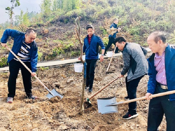 植樹現(xiàn)場(chǎng),大家分工協(xié)作、身體力行,揮鍬培土、提水澆灌,活動(dòng)現(xiàn)場(chǎng)氣氛熱烈。經(jīng)過一個(gè)上午勞作,在馬鞍山農(nóng)場(chǎng)義務(wù)植樹基地種下樟樹400多株。