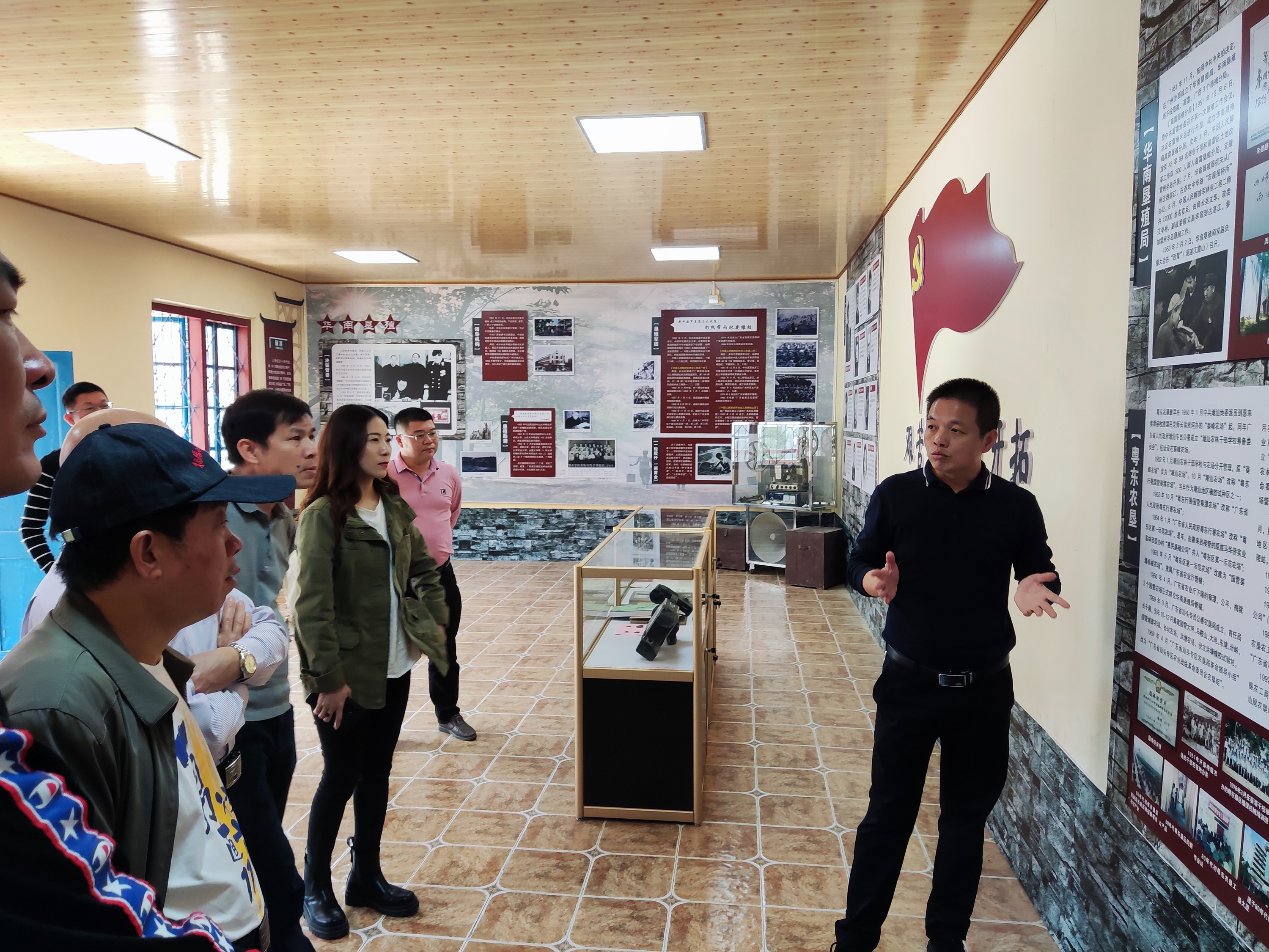 作協(xié)會(huì)員們參觀了粵東歷史陳列館,林小松同志詳細(xì)介紹農(nóng)墾的歷史和產(chǎn)業(yè)發(fā)展情況,重點(diǎn)講解了農(nóng)墾“為國(guó)種膠”的初心和“艱苦奮斗、勇于開拓”的農(nóng)墾精神,探討如何把科普教育基地和文學(xué)創(chuàng)作基地結(jié)合起來(lái),拓展愛國(guó)教學(xué)活動(dòng)的方式。