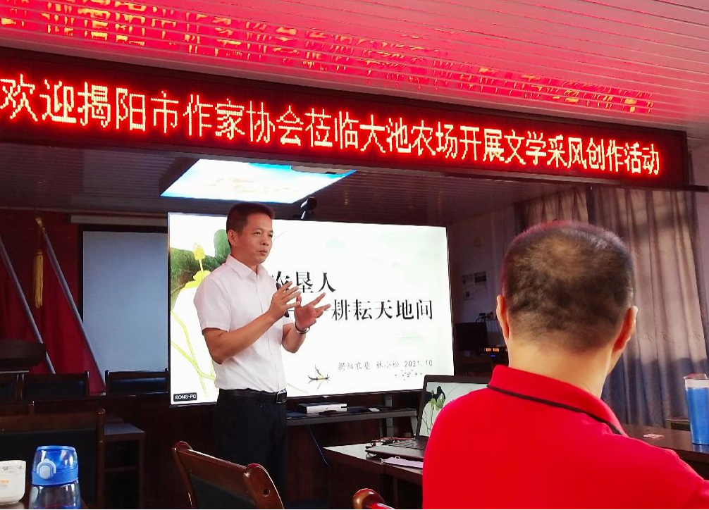 揭陽(yáng)農(nóng)墾集團(tuán)有限公司 黨組成員、紀(jì)檢組組長(zhǎng)、工會(huì)主席林小松參加了活動(dòng),并做了題為“農(nóng)墾人,耕耘天地間”的推介講演。